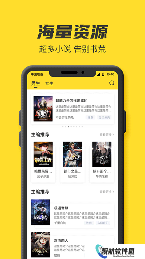 2、各类书籍应有尽有,小说热门排行、编辑推荐、大神书评,让读者们找到喜欢的小说。