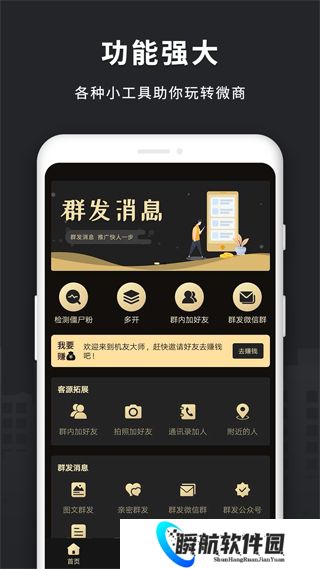 微商助手是针对微商从业者们精心打造的掌上共享,内置作图水印、信息群发、信息删除等多种功能,帮助微商朋友们顺利完成日常的工作,避免在无关的事物商浪费时间。自动检测已删除或拉黑你的好友,及时清理微信好友列表,更方便的管理好友信息。软件注重整体操作的便捷度,采用简单的架构,微商小白也可以轻松管理网店,宣传产品,是商家们的营销推广好助手。