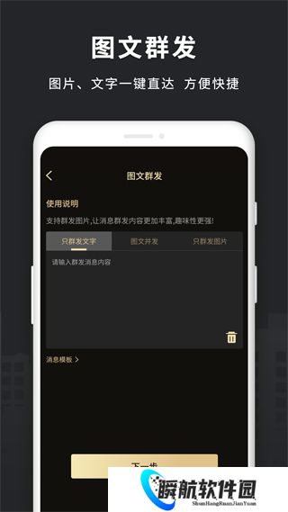 1、支持文字、图片、文章等格式,群发内容丰富多彩,更具吸引力。