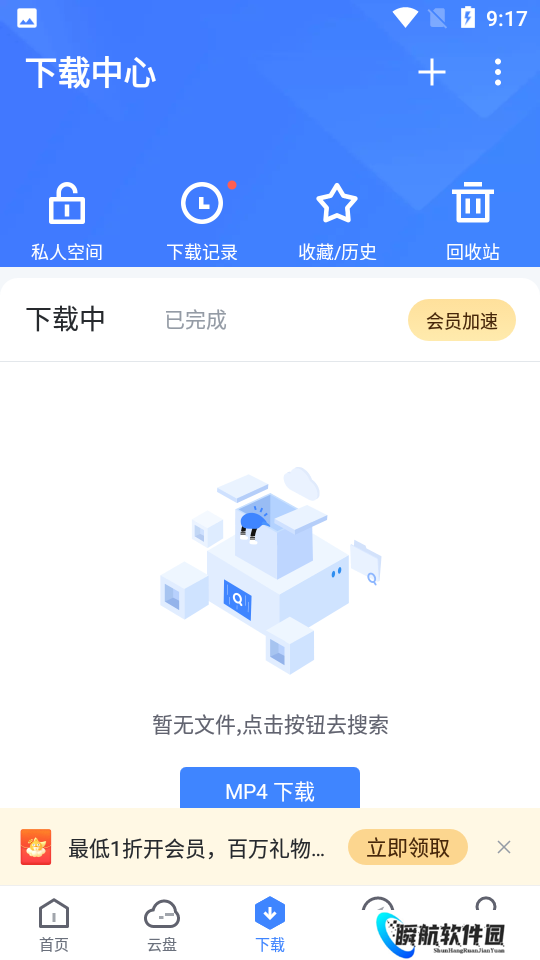 3、在打开的新页面中将链接复制进去点击下载即可,如需下载到云盘,可切换存储空间为云盘即可。