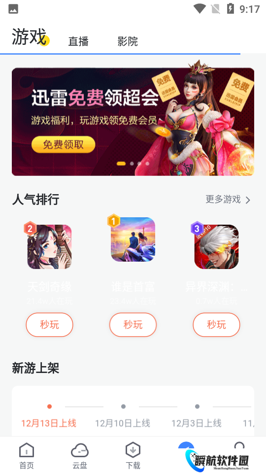 迅雷HD集下载、云盘、影音等功能于一体,完成继承了迅雷一贯的高速下载特点,还针对平板设备的操作习惯进行优化和升级,大型软件、高清视频、图片文件都可以快速完成下载。软件内置云盘服务,登录即可获取1T免费