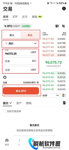 如果想要进行买入操作,依次在左侧输入“买入价”,“买入量”或者“交易额,最后点击买入;如果想要进行卖出操作,依次在右侧输入“卖出价”,“卖出量”或者“卖出价,最后点击卖出;从而完成交易。