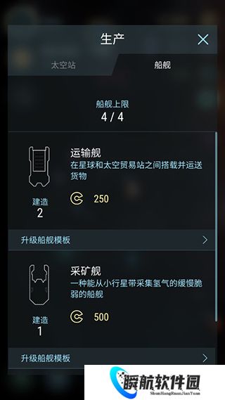 玩家点击左上角恒星图标下面的图标,即可进入生产页面,可以生产太空舰以及船舰;
