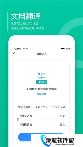 3、上传文档,选择翻译语言,就可以坐等翻译结果,免除复制粘贴的烦恼。
