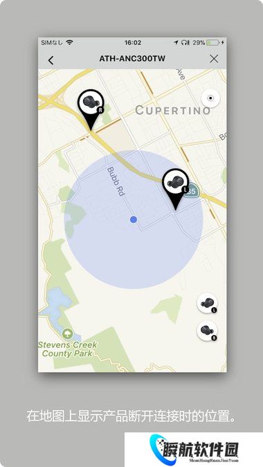3、在地图上显示耳机断开连接时的位置,即使铁三角蓝牙耳机丢失也可以找回。