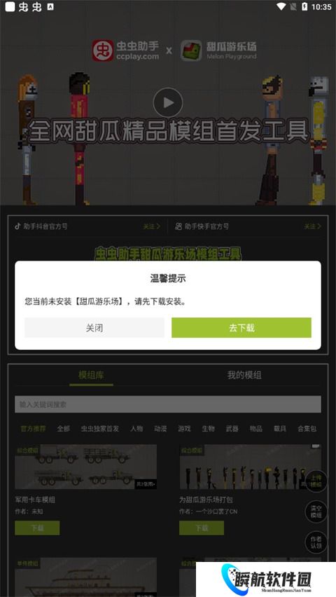 2、这里有很多模组,下载模组之前需要先下载甜瓜游乐场;