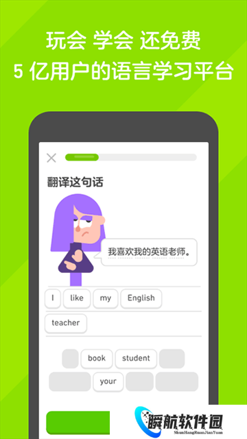 2、学习内容轻松又有趣,设计的多邻国语言课程将高效提升你听说读写能力。