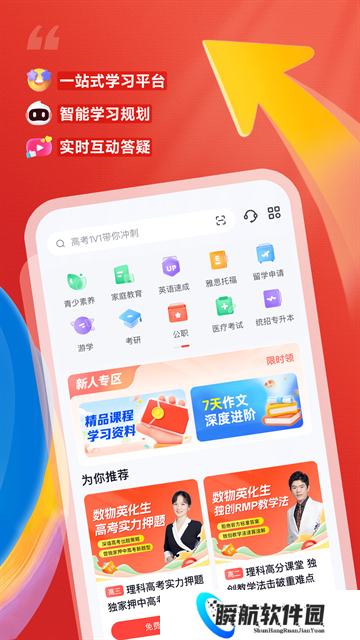 高途课堂安装包当中每个分类的学习知识当中都拥有极为优秀的教师为你进行在线指导,一对一的学习指导让学生们去进行学习更为的轻松,以便可以极为高效的提高学习成绩。