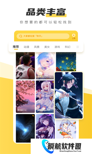 1、所有的壁纸都直接展示在首页中,导览清晰,用户可以使用软件快速筛选出自己目标的壁纸类型。
