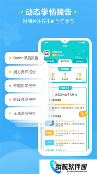 2、美好线上学习体验,搭配线下多元彩色教具,真听真学真感受。
