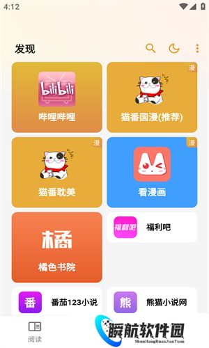 猫番阅读app是最好用的小说漫画阅读神器,软件自带多条不同的小说书源以及漫画图源,无需导入源站直接就能搜索漫画,阅读小说的。猫番阅读app全站小说漫画资源统统都能免费看,感兴趣的资源直接点击即可在线阅