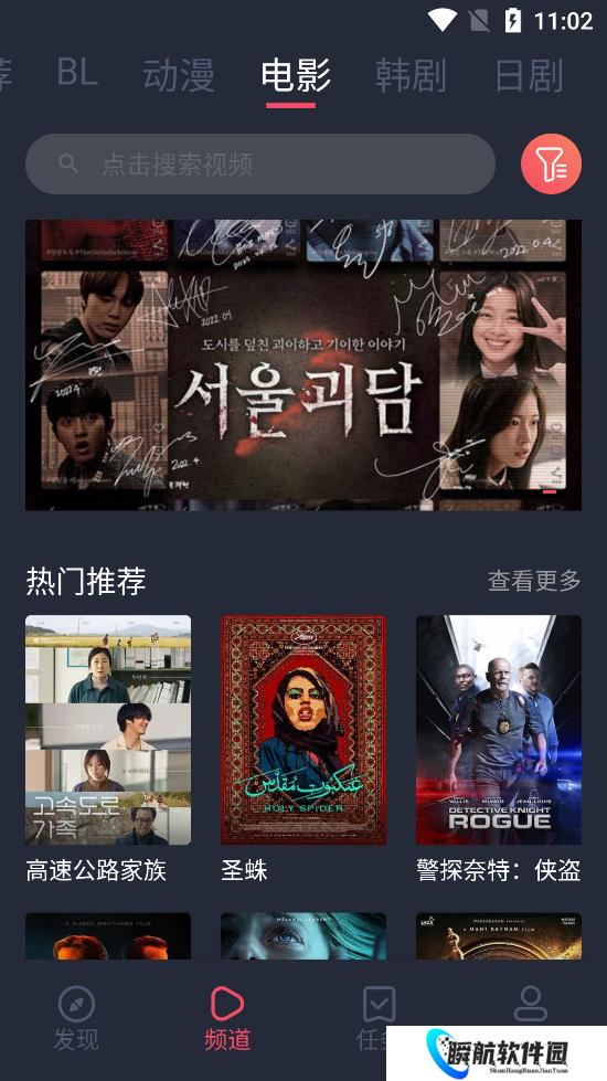 3、进入App首页,在搜索框搜索感兴趣的影片,点击进入影片播放页