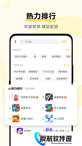 4、点开【排行】,提供了热门榜、新品榜,玩家可以根据榜单选择玩耍。