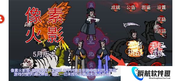 除了经典的1v1决斗模式外,像素火影游戏还拥有着一个非常有趣的无尽强者模式,在这个模式中,玩家将会一步步挑战更加强大的敌人,挑战的过程中玩家能够选择的人物也会越变越多,比如面麻、带土和长门等等,保证每位玩家都能够在游戏中得到充分的乐趣和享受。游戏画面采用了像素化的风格,非常具有特色,画风虽然简单却充满了浓厚的九十年代动画气息。游戏场景非常细腻,整个画面感非常出色,为玩家营造了一个充满动感和紧张感的战斗世界。这是一款非常出色精彩的游戏,能够让玩家们沉浸在火影忍者的世界中,享受全新的战斗挑战,游戏不仅玩法经典,画面也超级好看,所以玩家们可以非常放心的下载和畅玩。