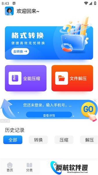 青蛙浏览器下方的功能栏可以查看首页、分类、扫描、文件等不同的模块,在首页可以查看网址,分类则是书架的功能,用户在线看的小说可以保存在这里。扫描的功能可以让你识别二维码,或者在全网进行识图搜索,而文件栏可以进行格式转换、压缩。