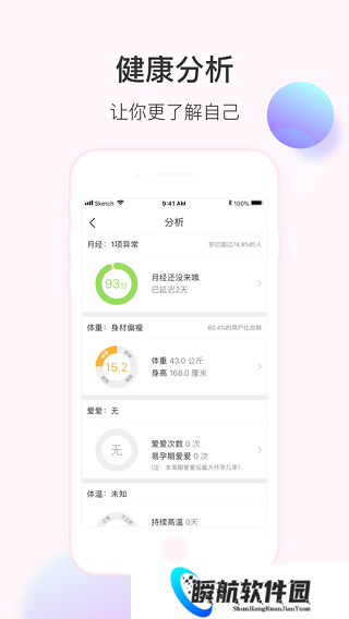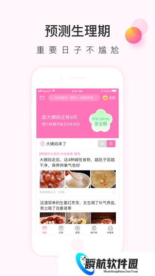 1、经期记录,记录用户的个人经期,智能计算经期周期,预测经期,提醒女性例假的到来。