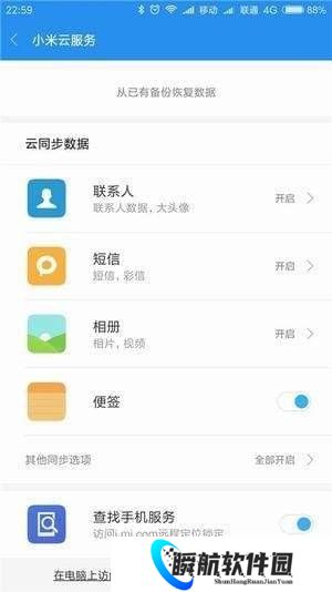 3、在同步界面中,找到小米云服务选项,点击进入。