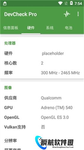 2、硬件信息,显示当前手机系统的处理器、供应商、分辨率和屏幕尺寸。