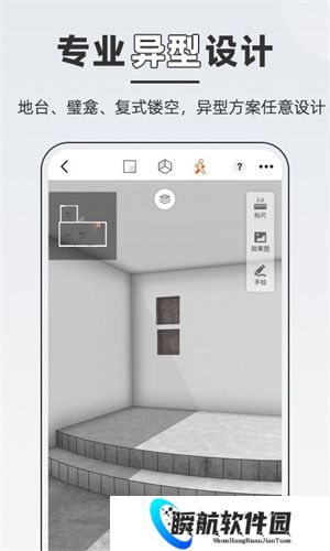 3、提供解决异型设计快速造型功能,地台、壁龛、复式镂空等异型方案也能轻松实现。