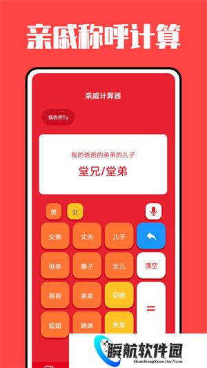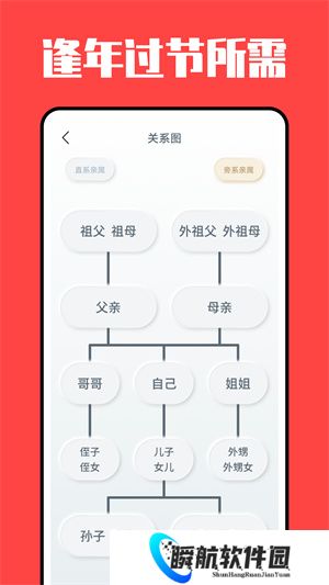 亲戚称呼计算器是一款帮助用户快速计算亲戚间的正确称呼关系的工具软件。该软件让用户在各种场合都能使用准确的称呼,无论是父母、祖父母、兄弟姐妹、堂兄弟姐妹还是表兄弟姐妹等,此应用都能轻松应对。只需输入两位亲戚的关系,将立即为您计算出正确的称呼和称谓,让用户在日常生活中更加得体和礼貌。无论是家庭聚会、婚礼还是其他重要场合,这个亲戚称呼指南,帮助您与家人和亲戚保持良好的关系和交流。