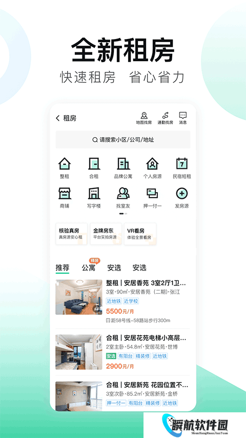 安居客网上租房也被叫做安居客,是国内最大的房地产租售平台之一,聚集全国新房、二手房、租房、商品房四大房产类型,线上浏览房子的布局与价格信息,找到心仪的房子。同步数十万个小区楼盘的数据信息,房价涨跌数据随时看,还会精确估算出买房的成交价格。设置VR售楼处,看到感兴趣的房屋直接进入全景看房,在手机上看房屋的内饰、装修等信息,看房省心又安全。