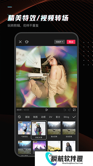 3、内置了多种滤镜和特效效果,能够为视频添加各种视觉效果,提升视频的质感和创意。