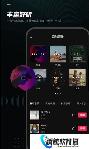 2、支持视频创意变声功能,海量曲库外加抖音独家歌曲,奇趣变"声”,让视频更“声”动。