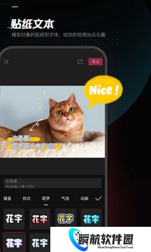 1、独家设计手绘贴纸,多种风格字体随心选,给你的视频加点乐趣,轻松剪出美好的生活。