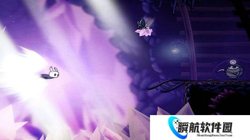 7、来到左边后有一条直路,一直顺着走,会遇到一个大BOSS破碎容器,推荐带上防御者纹章打完boss后往左走,走到底可以看到帝王之翼,捡起来就获得了二段跳能力了。