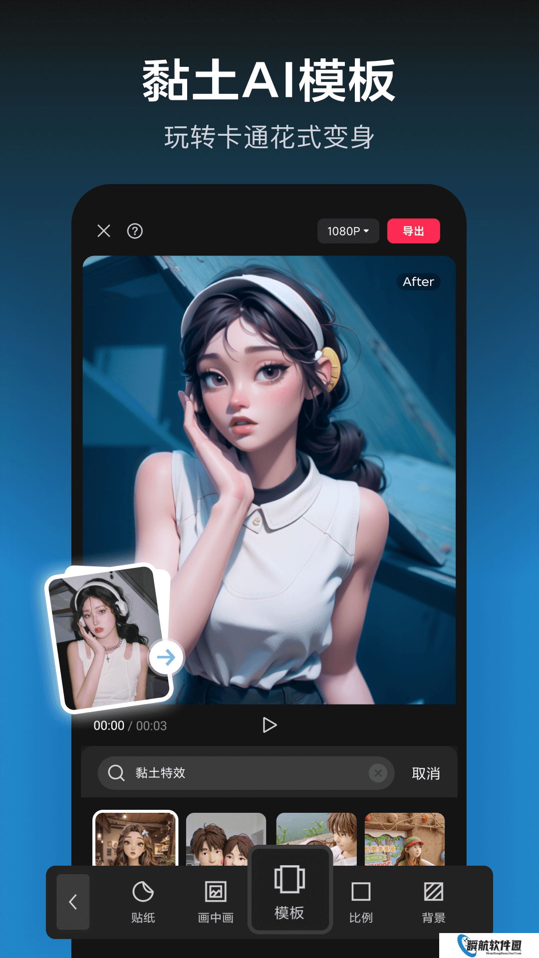 1、组合视频剪辑快速制作短视频,并与家人和朋友分修饰画面以及美化的人物。