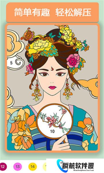 2、进入绘制界面,在下方点击与图片人物对用的数字颜色即可进行填色。