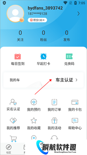 1、打开并登录软件后,进入我的页面中点击【车主认证】。