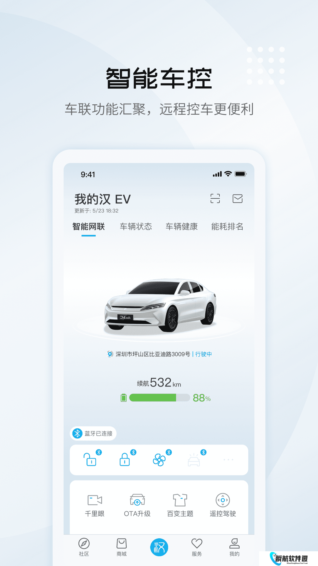 比亚迪汽车是比亚迪公司专门为自家车主用户推出的一款控车与比亚迪社区app,在这里不仅有专业的车资讯,精彩的短视频,车友互动社区,一手新车信息,还提供控车,看车、选车、养车、聊车、积分、商城为一体的汽车生活服务。