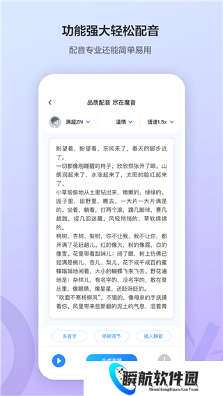1、丰富的配音资源,拥有大量不同风格与类型的声线资源,可以轻松找到适合不同场景的配音素材。
