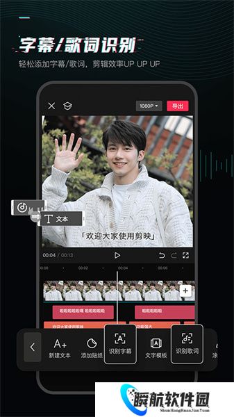 3、视频字幕,简单操作就能为视频添加字幕,字幕可以在视频的各个方位进行添加。