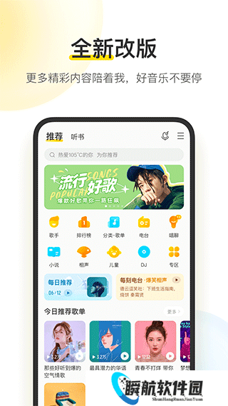酷我音乐永久免费2026是一款优质音乐播放器,它不仅有着庞大的音乐曲库,而且所有的音乐资源均可以免费播放,再搭配上顶级音效设置器,让你能够沉浸在精彩的旋律之中。酷我音乐还可以根据你的心情播放不同风格的歌曲,为歌迷们提供最贴心的歌曲搜索体验。除此之外,酷我音乐还具有个性换肤、超炫语音搜索和精准音频指纹识别等独特功能,可以把百万首歌曲专辑装进口袋,随时随地想听就听。
