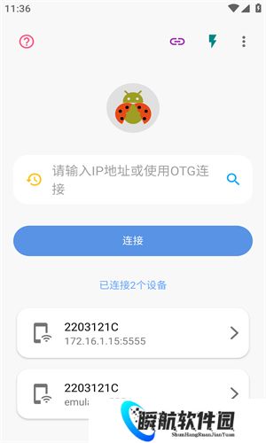 4、此时,我们在新的设备上打开甲壳虫ADB助手,输入被控机的IP地址和端口,就可以连接到手机设备了。