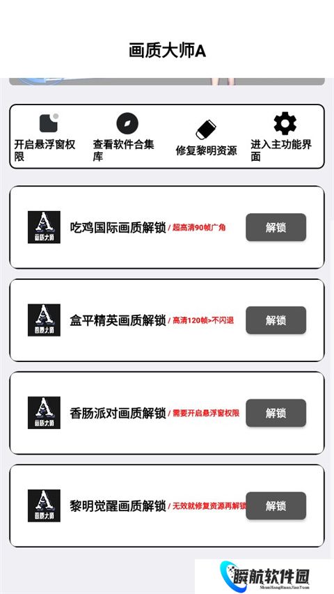 画质大师A是一款无需做任务的画质助手,玩家们在这里登录后即可随时进行使用,并且所有功能都是永久免费的。该应用支持多个游戏,如和平精英、香肠派对等,可以帮助玩家一键解锁超高120帧率的画质,并提供音质调整功能,给玩家带来视听双重震撼。