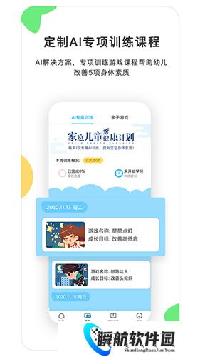 1、软件定制强大的AI训练课程,能有效提升儿童五项身体素质,让宝宝能够茁壮成长。
