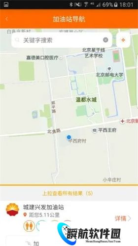 5、在油站查询页面中,定位位置信息,查找附近加油站。