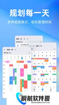 1、提供日、周、月等多种日程视图展示,无论你有多少日程事项,都可以清晰展示。