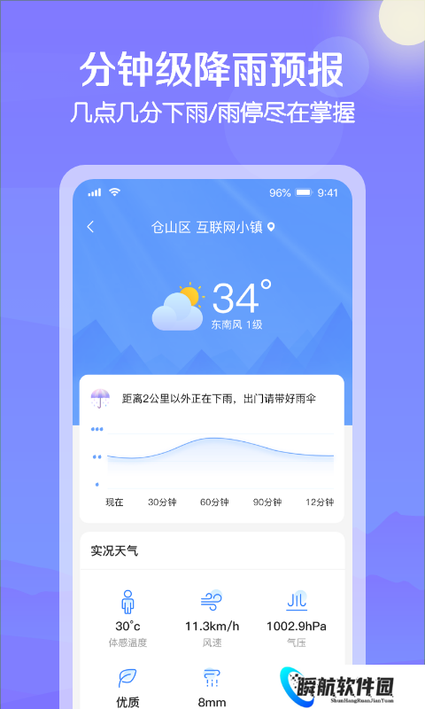 1、软件中有着分钟级的降雨提醒,让每天何时降雨何时停一目了然,让出行更方便。
