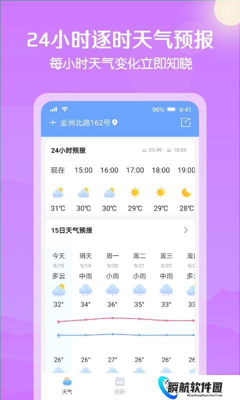 3、提供逐小时天气预报服务,轻松查阅24小时内天气变化,提早预防早晚温差过大。