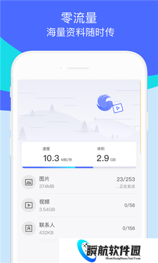 1、无需联网免流量、不用数据线、自建热点WiFi,零流量,一键换机数据迁移。