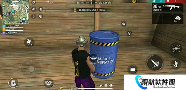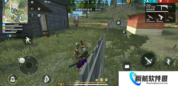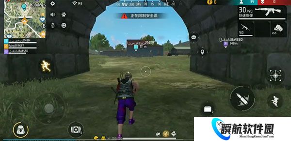 6、装备武器搜索得差不多后,我们就可以点开地图看看安全区的位置了,白色圈内就是安全区,而且随着时间流逝,安全区会越来越小,我们要待在在安全区内才能避免被毒雾所感染。如果大家离安全区较远,那么可以在路上找一辆车,然后开车前往安全区。靠近车辆后,点击驾驶即可开车,开车方法跟大多数赛车游戏差不多,左下角两个按钮控制方向,右下角择优油门和刹车。我们可以提前开车到安全区中心区域,然后继续搜索物资,并且随时注意周围其他玩家。