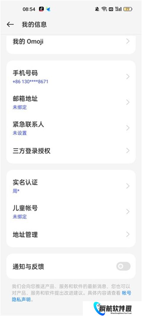 3、点击之后就换跳转到手机的“我的信息-实名认证-设置”,其实就是oppo账号,所以大家在清除实名的时候也要注意,如oppo小游戏清除了实名认证,那么oppo账号也会清除掉,如图下;