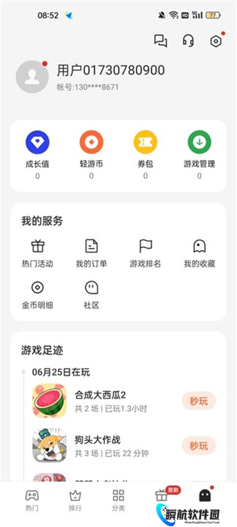 首页是热门游戏,有四个板块功能,最新、分类、特色合集和网游;