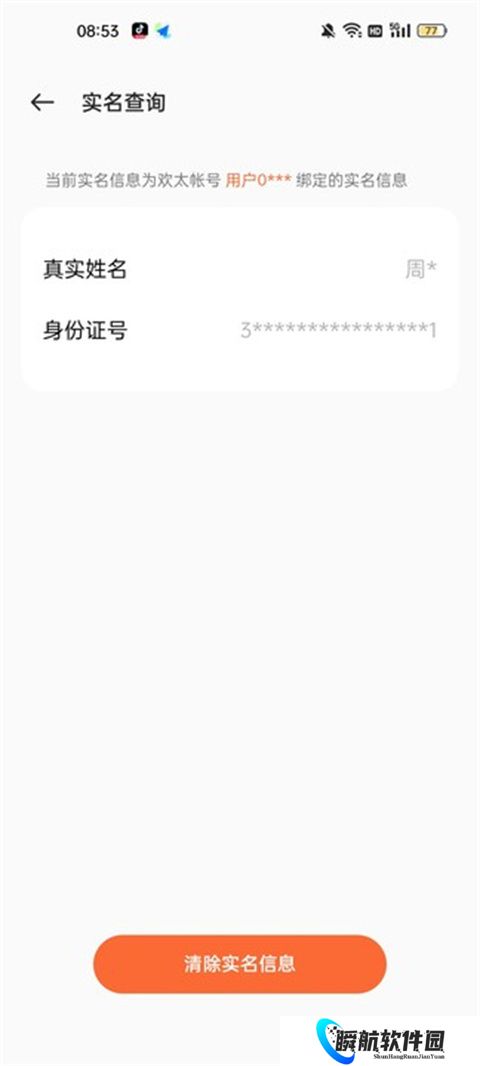 2、在这里可以看到自己的实名信息,我们先清除实名,再进行更换;