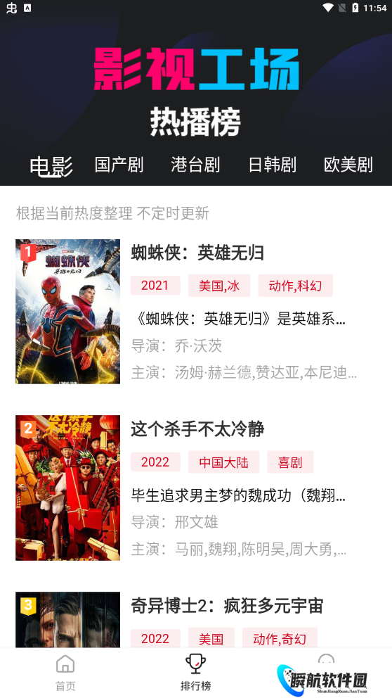 影视工厂是一款手机免费追剧软件,电影、电视剧、综艺节目都可以一网打尽,每天更新时下热播好剧,紧跟潮流。软件支持在线和离线两种播放模式,随时随地畅享影视之乐,成功摆脱网络的限制。软件还内置智能推荐功能,会根据观众的偏好来推荐自己可能感兴趣的影视作品,并且影视首页的排行榜也会实时更新,保证观众每天都有新剧可看。纯净的影视播放环境,观众追剧时没有任何的广告弹窗打扰,让观众能够沉浸于精彩电影剧情。