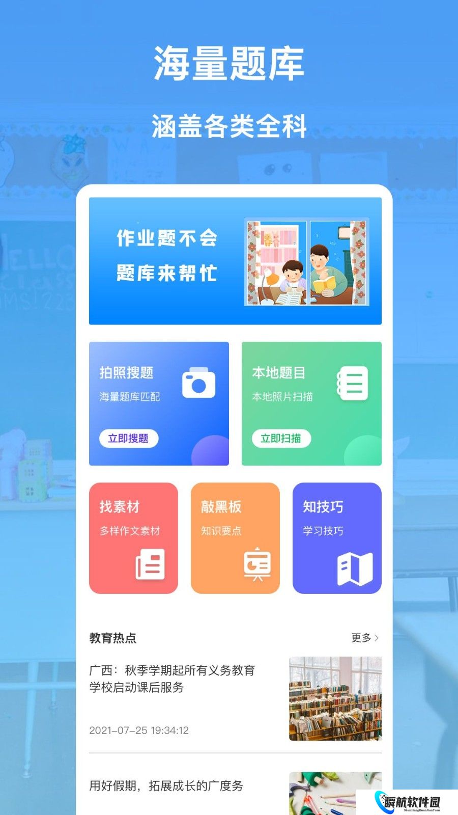 2、智能搜题服务,一键搜索,快速出题,快速解析,让学生可以最快地找到相关试题。